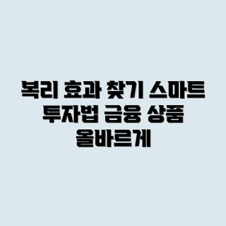 복리 상품을 선택할 때는 투자 기간과 이율을 고려하여 자신에게 맞는 금융상품을 찾아야 합니다. 제대로 된 복리 상품을 찾는다면 장기적으로 큰 자산 증가를 기대할 수 있습니다.