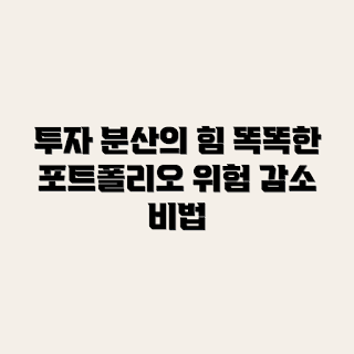 분산 투자(Diversification)는 단순히 위험을 줄이는 것뿐만 아니라, 전반적인 투자 성과를 높일 수 있는 방법입니다. 그러니 지금 바로 다양한 자산으로 포트폴리오를 구성해보세요!