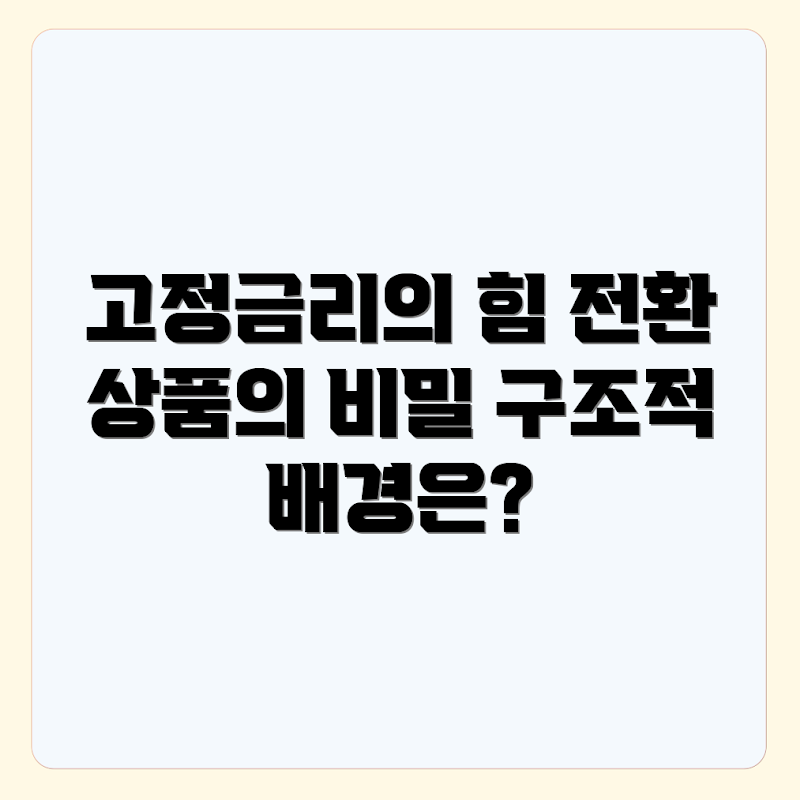 Q: 고정금리 전환 상품이란 무엇인가요?A: 고정금리 전환 상품은 변동금리 대출을 고정금리로 전환할 수 있는 금융 상품입니다. 이는 금리 변동에 따른 불확실성을 줄여주고, 차입자가 안정적인 이자 부담을 유지할 수 있도록 도와줍니다.