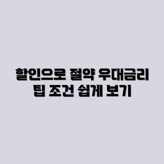 위 표처럼 할인률은 조건에 따라 달라질 수 있으니, 본인에게 맞는 조건을 잘 검토한 후 신청하는 것이 중요합니다.
