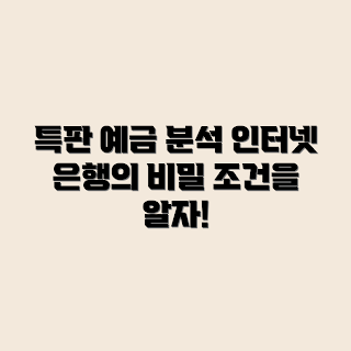 지금이 바로 점검할 시기입니다. 인터넷 은행의 특별 이벤트 예금 조건을 분석하고, 재정 목표와 맞는 전략을 세워 안정적인 재테크를 시작해보세요. 정보와 계획이 뒷받침되는 전략이 장기적인 재정 안정의 열쇠가 될 것입니다.