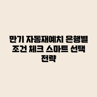 자동재예치는 만료된 정기예금의 원금과 이자를 자동으로 재투자하는 상품입니다. 이 상품을 선택할 때 주의해야 할 점은 각 은행의 조건과 유의사항인데, 각 은행의 혜택과 조건이 다르므로 신중한 선택이 필수적입니다. 이번 글에서는 은행별 자동재예치 조건을 비교하고, 추천 전략을 제시하여 고객이 보다 나은 결정을 내릴 수 있도록 돕겠습니다.