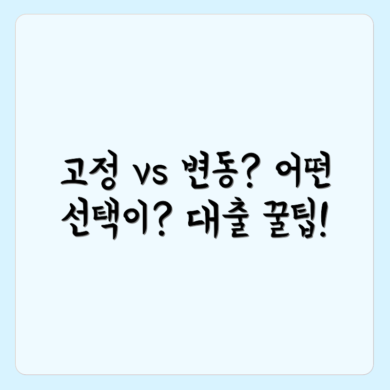 Q: 고정금리와 변동금리의 차이점은 무엇인가요?A: 고정금리는 대출 기간 동안 금리가 변하지 않아 예측 가능한 상환 계획을 제공합니다. 반면 변동금리는 시장 금리에 따라 변동되므로 초기 금리는 낮지만 나중에 금리가 오를 위험이 있습니다.