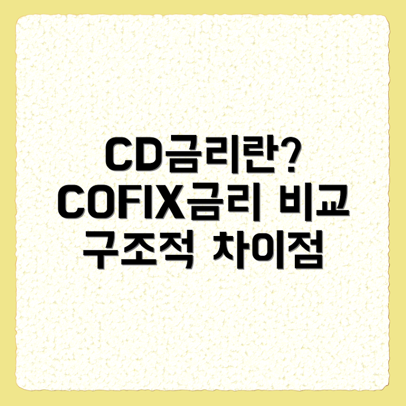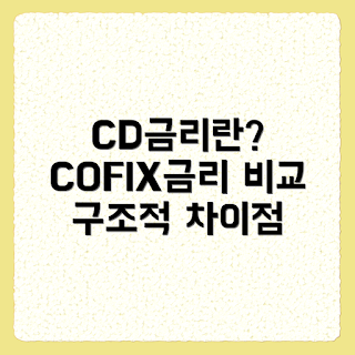CD금리는 COFIX금리와 구조적으로 다릅니다. COFIX는 ‘자금조달비용지수’(Cost of Funds Index)이며, 은행 자금 조달 비용을 기반으로 하여 설정됩니다. CD금리는 특정 예금 상품에 국한되는 반면, COFIX는 여러 자금 조달 수단의 평균치를 반영하는 금리 지표로 기능합니다.