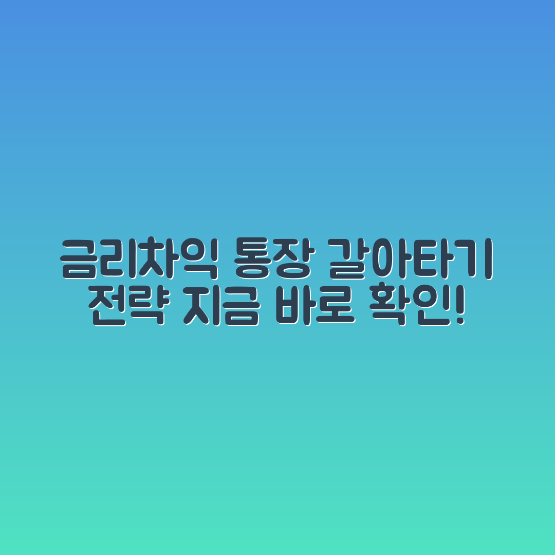 예를 들어, A은행의 금리가 2%일 때 B은행에서 3%를 제공받는다면, 이 차이로 상당한 수익을 기대할 수 있습니다. 더 나은 조건의 통장으로 전환하는 것이 효과적인 자산 관리 방법이 될 수 있습니다. 그럼 지금부터 금리차익 통장의 특징과 갈아타기 전략에 대해 알아보겠습니다.